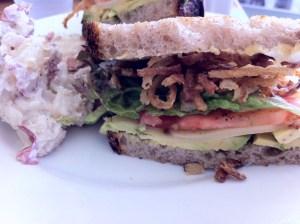 my egg fix, so we stopped at Silver Lake Coffee for breakfast. They have great egg sandwiches. I got an everything bagel with scrambled eggs, tomato, avocado and cream cheese – yea cream cheese and eggs – try it! They also have great coffee here.
