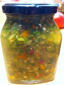 Put all the ingredients in the food processor (you might have to do it in batches depending on how big your food processor is) and pulse until all the ingredients are chopped. Here’s what it should look like: