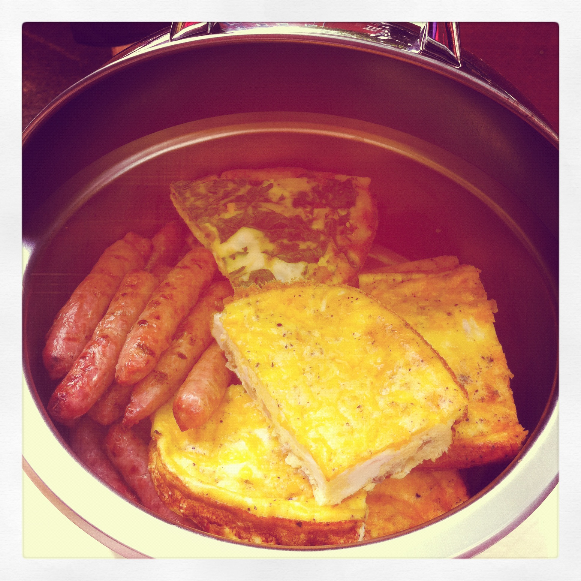 Here’s my eggs and sausages in my buffet server.